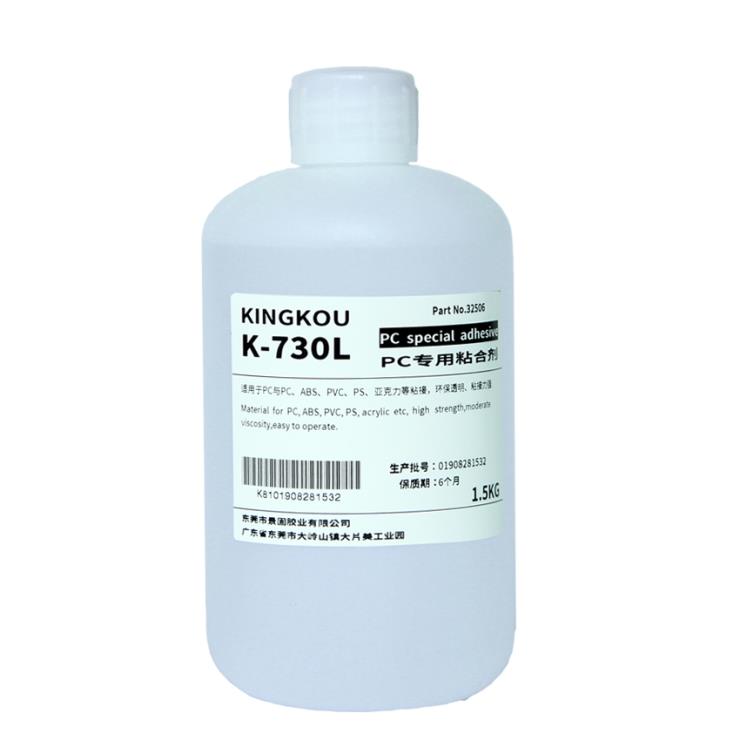 K-730是東莞景固膠業針對PC塑料粘接而研發的一款溶劑型專用接著劑,主要針對粘接PC塑料以及PC與其它塑料材質的粘接。該膠水可溫室操作常溫固化,使用方便,對于常見ABS、PVC、PS等多種基材都能達到較高的粘接強度。本產品性能穩定,膠層透明無色、白化程度低,粘接面清潔美觀,耐濕熱老化,無揮發性有害成分,膠液固化后環保通過SGS認證。