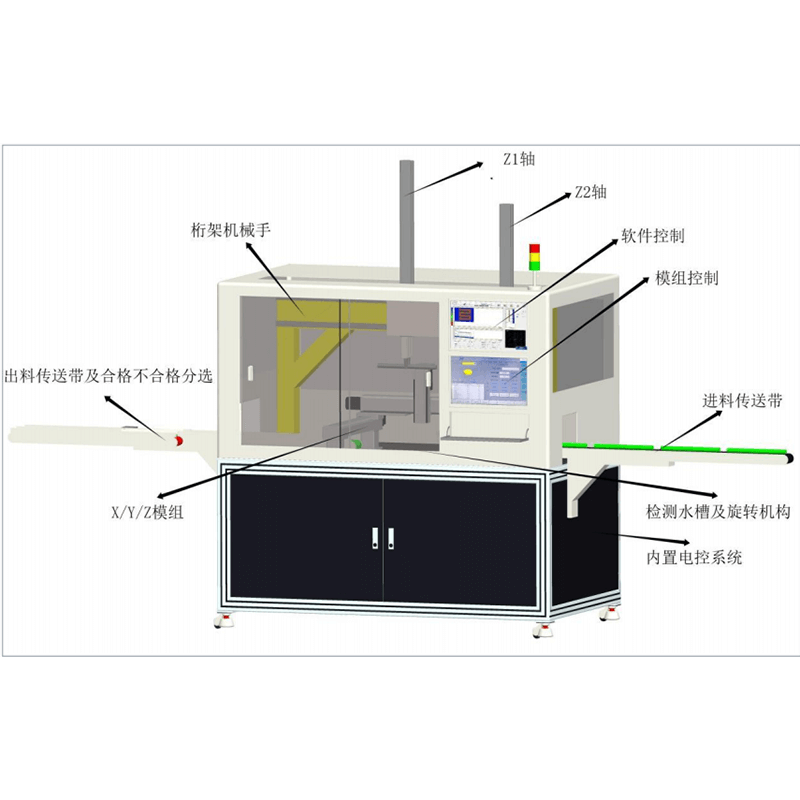 1、檢測效率高,采用雙工位檢測,精度高,最快可達6s/件;