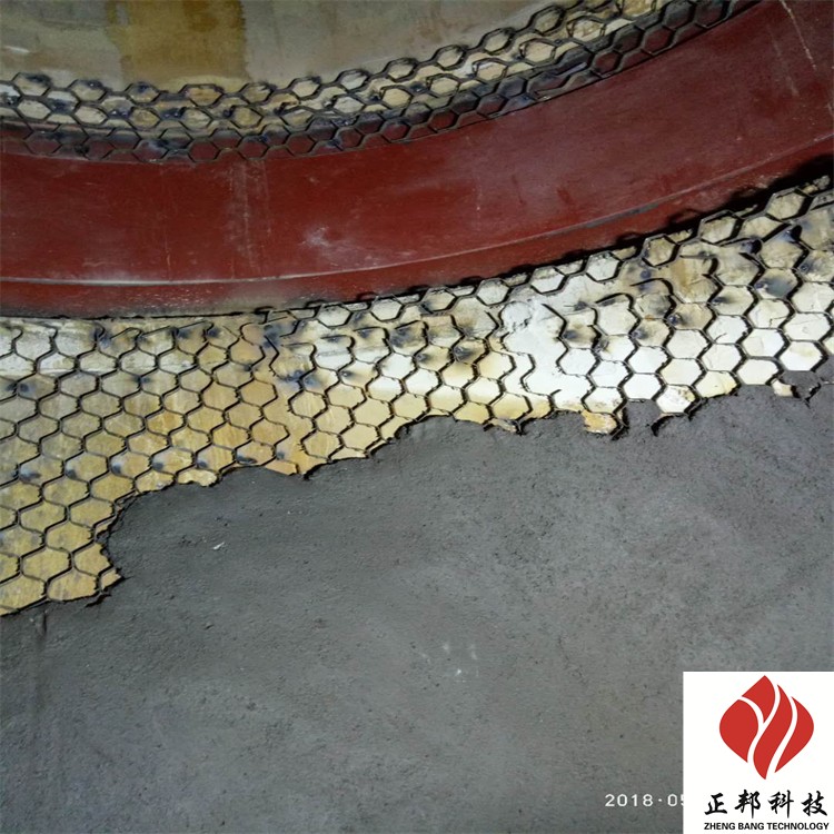2、需用力涂抹在焊接好的龜甲網上,保證不能有空洞或壓不實的現象,以保證防磨料緊密的和龜甲網及鋼板結合在一起,垂直面和頂部需一次成型,不能分層涂抹,以防止出現起層現象。