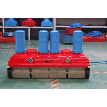 使用簡單方便、采用坦克履帶式行走機(jī)構(gòu)、超強(qiáng)爬坡性能、可全自動或遙控工作、自帶傳感器、觸壁自動掉頭、逐行清理、電子防纏繞設(shè)計。雙工模式,濾袋(10-100um)循環(huán)過濾和排水管直排。前置滾刷倍速刷洗清理更徹底、無盲區(qū)前置加大吸口輕松吸走沉淀、大物、樹葉等、吸口后置橡膠刮板、對瓷磚、馬賽克、塑膠膜、水泥池等更好的清理且不傷地面。對青苔、綠藻、絮凝物等徹底清除。