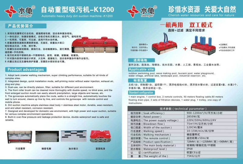 水龜K1200戶外游泳池水底吸污機(jī)游泳池吸污水泵水龜吸