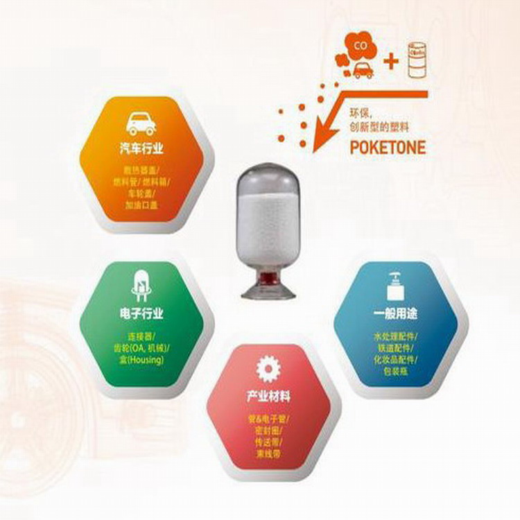 POKETONE是主鏈?zhǔn)怯商妓亟M成的工程塑料,高結(jié)晶性、結(jié)實(shí)的結(jié)晶結(jié)構(gòu),耐水解、耐沖擊、耐磨損、耐化學(xué)、耐燃料、氣體阻隔等性能。分為**和乙烯通過二元交替共聚合形成的高強(qiáng)度纖維用途共聚物(Copolymer)和作為工程塑料用途追加使用丙烯的三元共聚合物(Terpolymer)兩種。