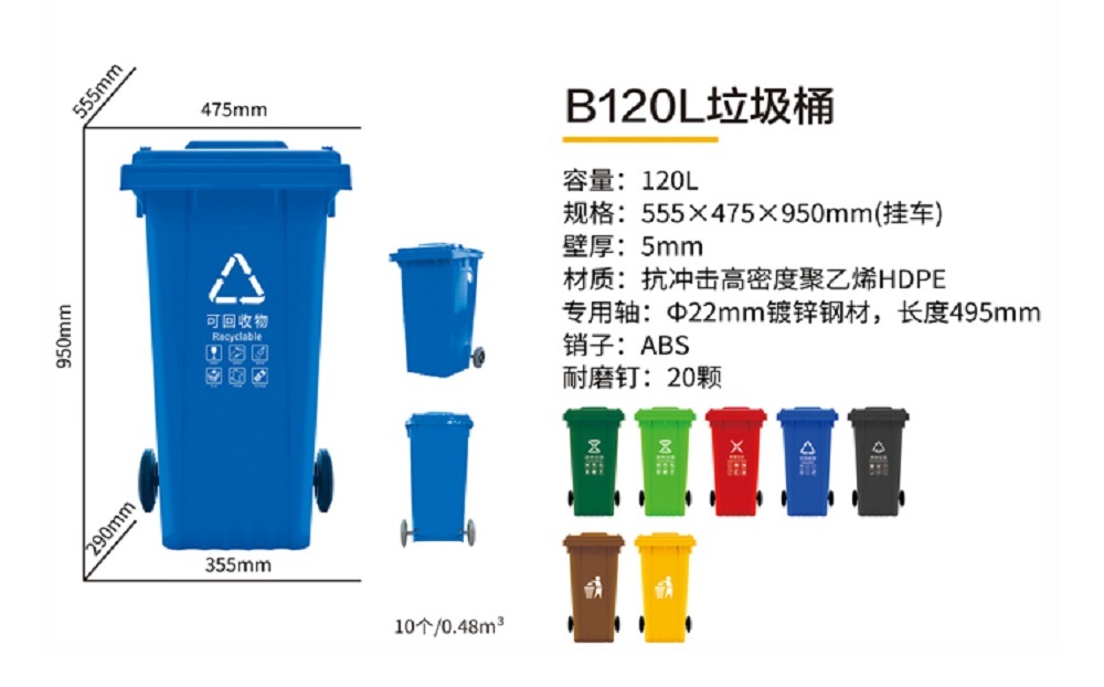 貴州赤水帶輪移動式120L可掛車型環衛垃圾桶的價格,都是工廠直售價,所有產品都是自己加工生產銷售。簽收驗貨,破損包賠。量大還有優惠,還能印制LOGO、定做顏色等
