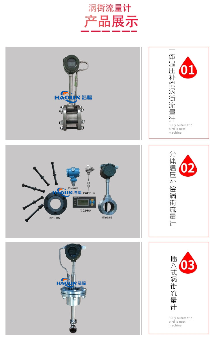 浩臨智能渦街流量計是根據卡門渦街原理來測量流量的一種應力式渦街流量計,具有壓力損失小,靈敏度高,結構簡單,無可動部件,可靠性高。信號電路采用單片機技術進行數據處理,將CPU單元、儲存單元、顯示單元、通訊單元和其他功能模塊封裝在放大電路內,具有RS485通訊   功能,有著非常穩定的零點和精度,廣泛應用于測量過熱蒸汽,飽和蒸汽,壓縮空氣、一般氣體及液體的流量測量。