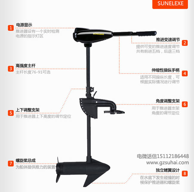48伏電動船外機推進器,適應(yīng)4-8人的橡皮艇,充氣船,沖鋒舟,塑料艇,魚船等中型船只使用。是您撲魚釣魚水上活動的好動力幫手,其優(yōu)點有,環(huán)保,安靜,高效,省耗,是眾多船上動力的明智好選擇,深受市場喜愛。