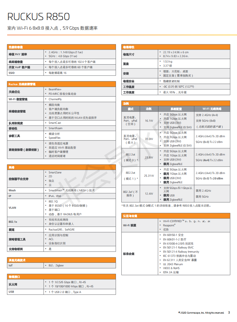 美國(guó)RUCKUS R850 室內(nèi)接入點(diǎn)