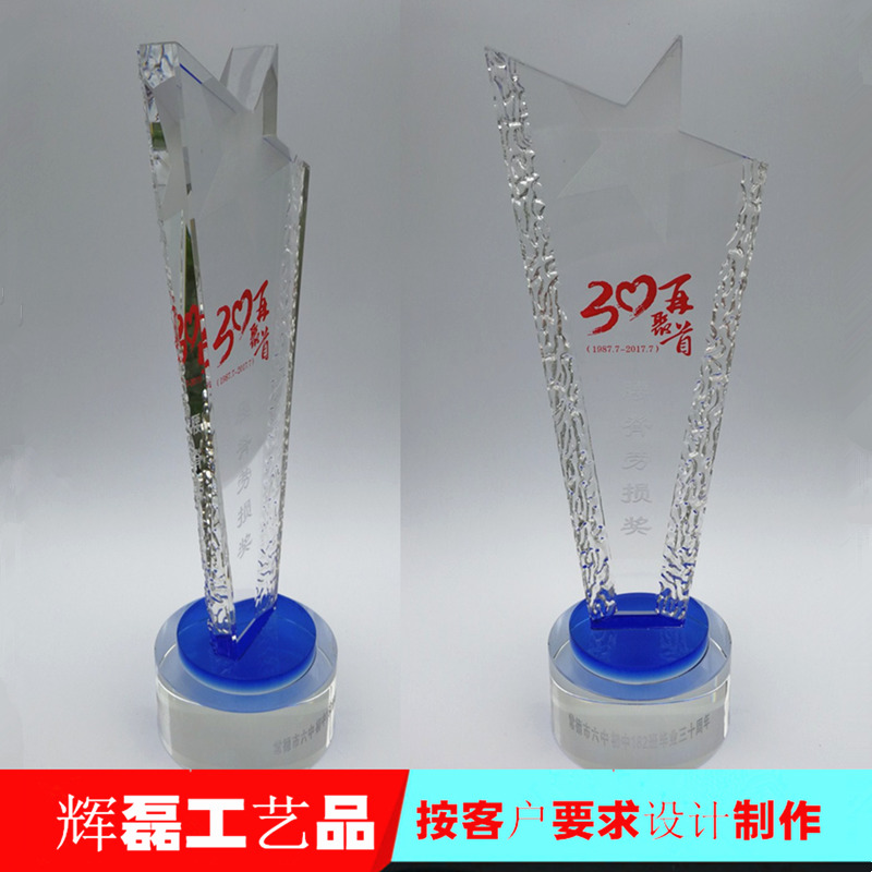在制作過程中,K9水晶獎杯定做廠家采用先進的工藝技術,嚴格把控每一個生產環節。他們精選高質量的K9水晶材料,經過精細的切割、打磨和拋光,使得每一個獎杯都呈現出的光澤和質感。同時,他們還根據客戶的需求,進行個性化的雕刻和定制,讓獎杯更具紀念意義。