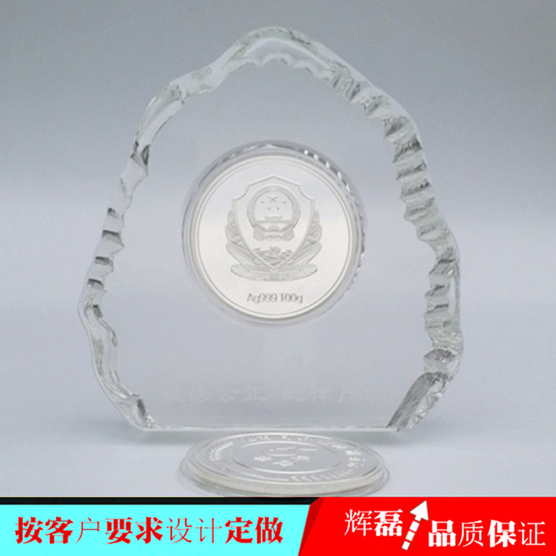 水晶獎杯定制水晶鑲嵌銀幣擺件獎牌制作水晶獎杯制作廠家