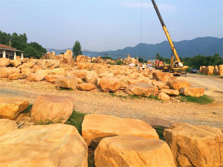 • 黃色石頭造景公園刻字黃蠟石點(diǎn)綴