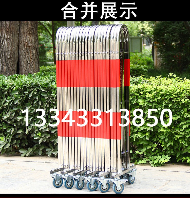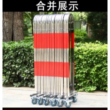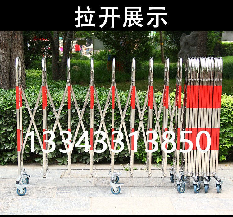 不銹鋼伸縮圍欄外觀,紅白相間,紅色為反光膜,白色為不銹鋼自體顏色,整體美觀大方。