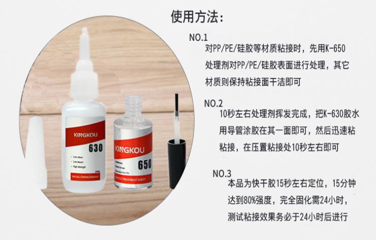 K-630是東莞景固膠業針對塑料 金屬、硅橡膠、皮革、陶瓷、木材等材質粘接而研發的一款通用型瞬間接著劑,常溫下即可使用不需要加熱或加壓,較高強度,適用接著常見塑膠(PP、PE、PVC、亞克力、ABS、PC、尼龍等)、金屬(磁鐵、不銹鋼、鋁合金等)、硅橡膠、TPU、TPR、TPE、海綿、EVA、皮革、木材等多種基材的粘接都能達到較高的粘接強度,有些也可用于結構粘接。本產品性能穩定,膠層透明無色、白化程度低,粘接面清潔美觀,耐濕熱老化,溫瞬間固化,數秒鐘內即可粘牢,無須長久等待,能長期保持良好的粘合效果;無揮發性有害成分,膠液固化后環保通過SGS認證。