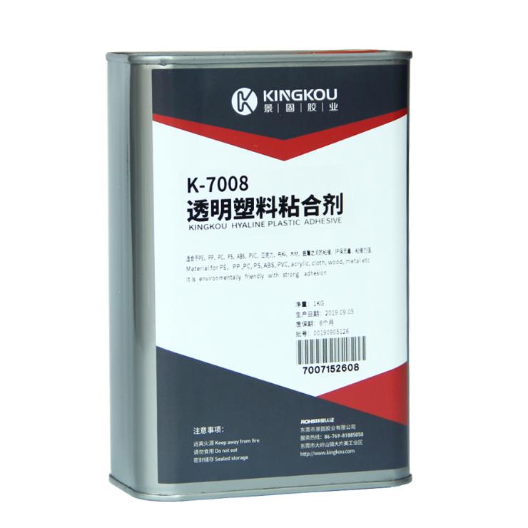 景固KINGKOU K-7008透明粘合劑系復合型樹脂膠水,主要針對透明塑料的粘接塑料與金屬、木材、非金屬、絨布、陶瓷、石材、紙板、海綿、EVA、玻璃等基材的粘接。該膠水為單組份常溫固化,使用方便;無污染、粘接力強,干膠快,環保,粘度低,稀釋后能噴涂,省膠且大大提高施工效率。