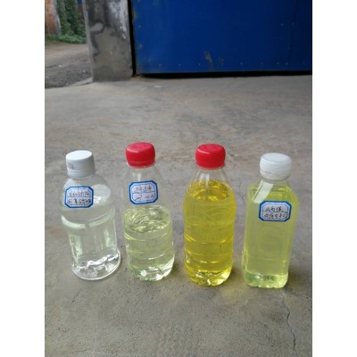 生產流程如下:先將各種廢機油打入脫水、脫氫罐加熱到150度左右脫水、脫氫來提高閃點;油溫降到80度時將油打入脫膠罐中加入脫膠劑、沉降劑攪拌30分鐘后脫膠提高亮度;油品溫度降到60度將油打入脫色罐中加脫色劑攪拌10分鐘, 經過濾機即是成品油(無論提煉基礎油或者柴油,做成啤酒色需要化工原料300元左右;做成接近水白色需要500元的化工原料;做成水白色需要800元左右的化工原料),出油率高達85%以上,處理出來的成品油清澈透亮,味道正,不灰色。