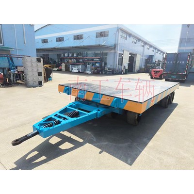 45噸重型平板拖車 無動力牽引全掛拖車鋪橡膠板南工車輛長期非標訂制,本拖車載重大,成本低,使用壽命長等特點。這類平板拖車常用于冶金、模具、機械等重型產品的中轉運輸,一般采用壓配式實心胎.載重大,免維護。