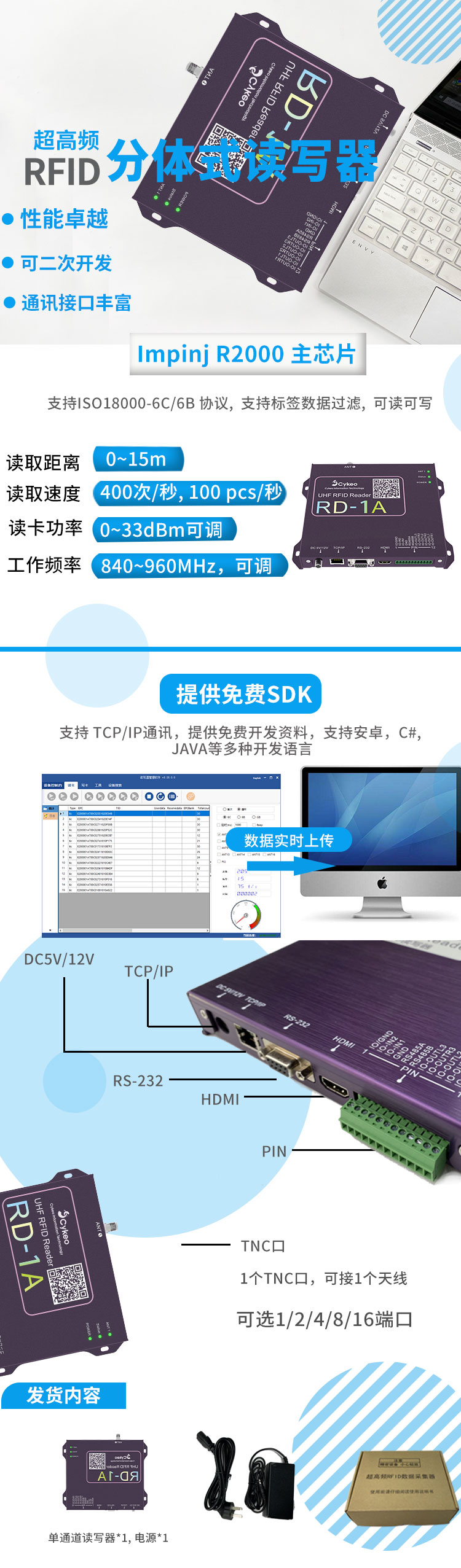RFID八通道讀寫器R2000多通道遠距離分體式超高頻標簽