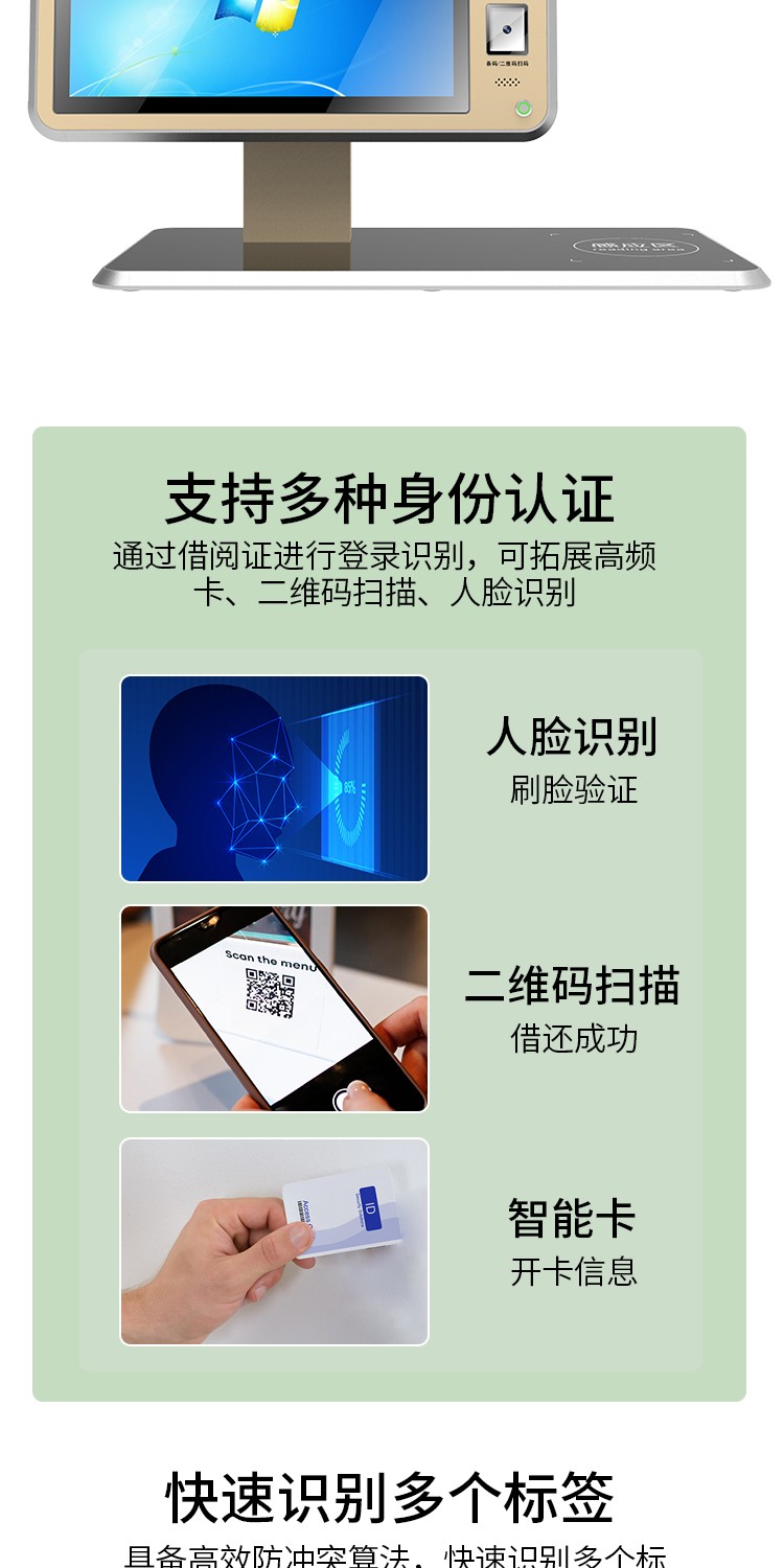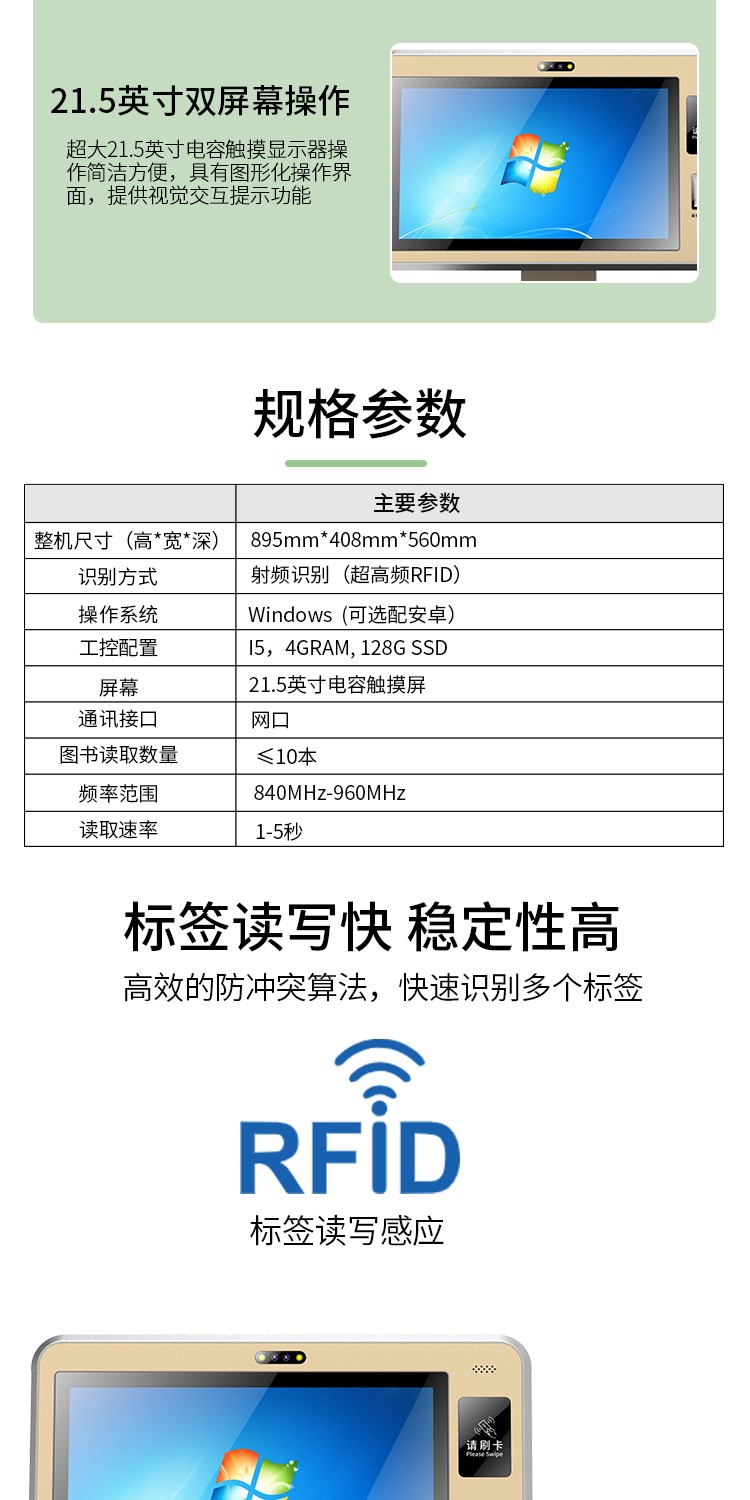 rfid標(biāo)簽讀取超高頻自助借還書機(jī)一體機(jī)館員工作站自助