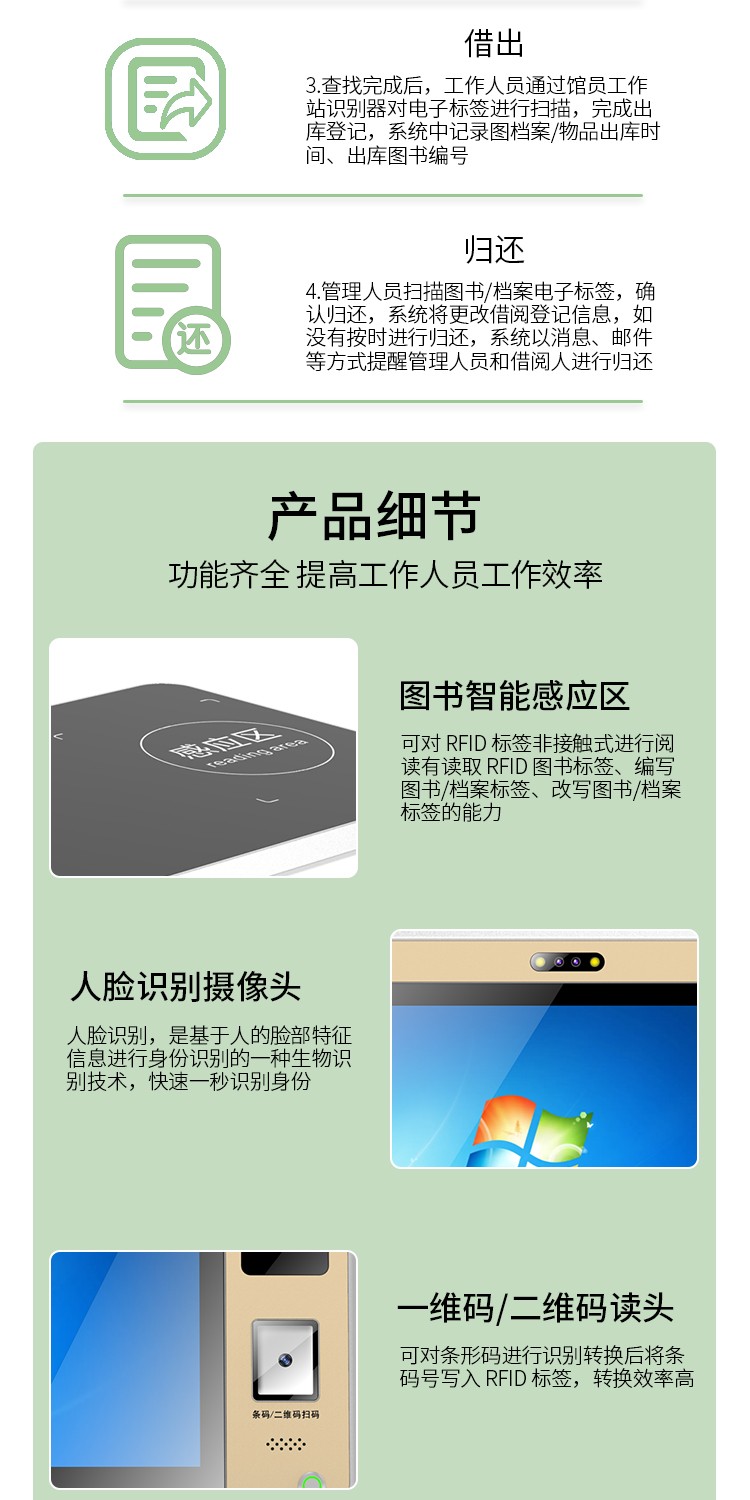 • rfid標(biāo)簽讀取超高頻自助借還書機(jī)一體機(jī)館員工作站自助