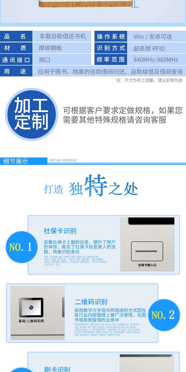 rfid車載自助借還書機觸摸屏查詢一體機自動借還書圖書