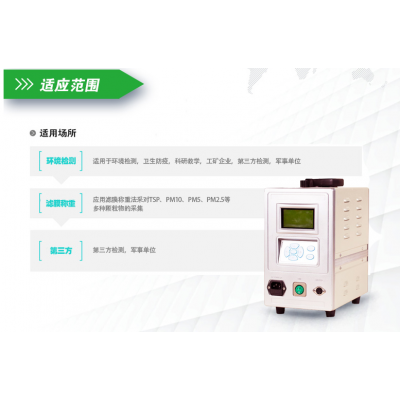 二、用途 應用濾膜重量法采集大氣中顆粒物, 適用于顆粒物采樣無人值守全天候工作,配套PM2.5切割器可采集TSP、PM10、PM5、PM2.5等多種顆粒物。可廣泛應用于環境監測、衛生防疫、勞動保護、科研院校等部門進行顆粒物濃度監測。