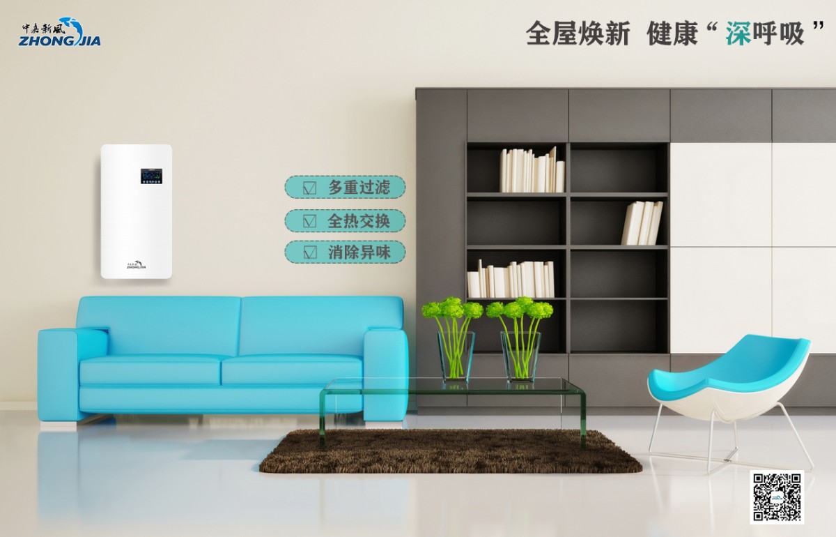 • 中嘉新風綠筱 智能柜式新風機	ZJM-G-1500ZS-A