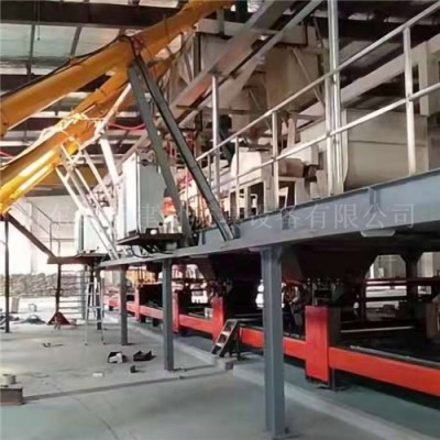 集裝箱房地板生產線改變了之前生產用工多、工序繁瑣、勞動效率低等缺陷,實現了自動上模板、自動涂脫模劑、自動配料、自動上漿、自動鋪布、自動攤平、自動分切、自動復壓、自動接板等自動化功能。其智能化切割系統,根據規格要求,自動分切多種規格的產品,減少了用工量,提高了產品精度,保證了生產快速流水作業。