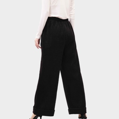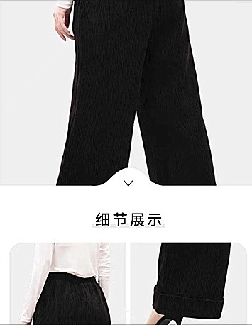 IRENENA服裝品牌的這款高腰休閑百搭黑色寬松豎條紋絲絨闊腿褲,是品牌對于時尚的一次大膽嘗試,它的精湛做工和獨特設計,無疑將吸引更多女士青睞。