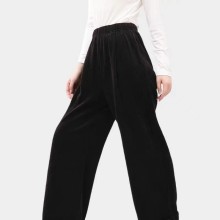 溫碧霞代言IRENENA服裝品牌高腰絲絨闊腿褲黑色均碼休閑褲