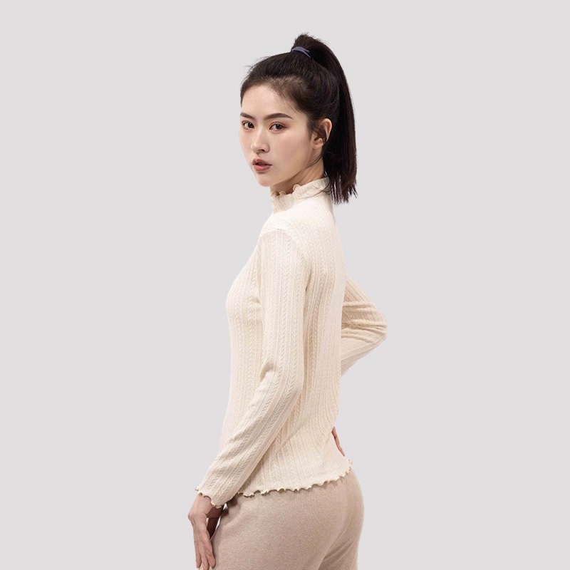 我們深知,一件好的打底衫,面料的選擇至關重要。因此,我們精選了上等的毛料加棉纖維,毛料加棉纖維長且彈性好,織成的面料柔軟而富有彈性,穿著起來親膚舒適,宛如第二層肌膚。同時,耐磨性和透氣性也非常出色,確保了打底衫的耐穿和舒適。