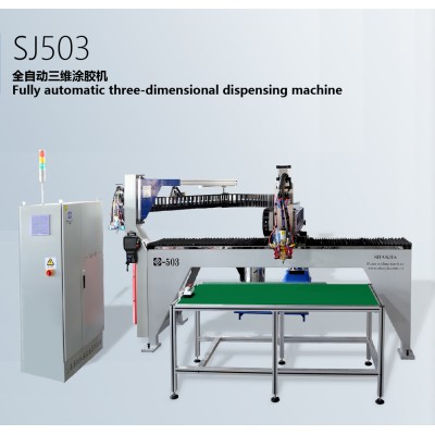 型號SJ-503系列全自動常量雙組份涂膠機應用于:汽車、儲能電子、家電、制冷、空氣凈化等行業的密封。