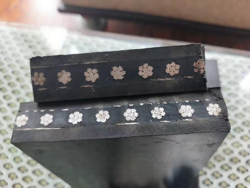 3:采用鍍鋅全開放式結(jié)構(gòu)鋼絲繩與橡膠具有良好的附著性和滲透性,透氣性實(shí)驗(yàn)指標(biāo)達(dá)到國際先進(jìn)水平,鋼絲不脫落,耐沖擊使用壽命長。