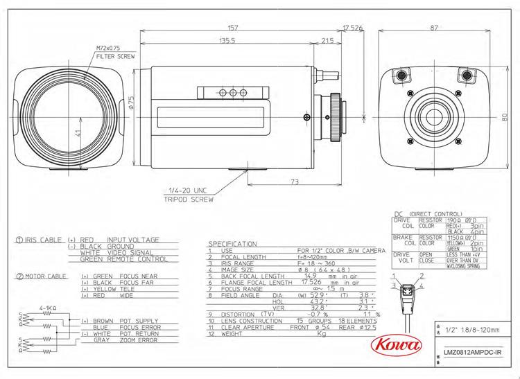 KOWA120mm自動光圈透霧安防攝像鏡頭