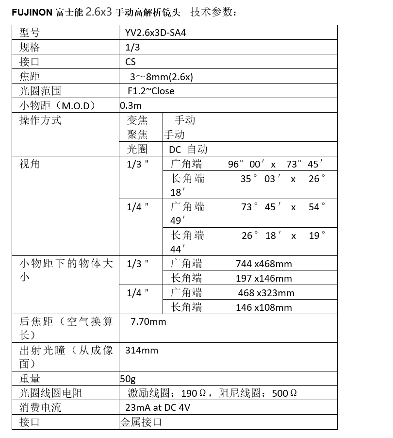 YV2.6x3D-SA4富士能38mm手動高解析鏡頭:一款專為高清拍攝而生的神器。