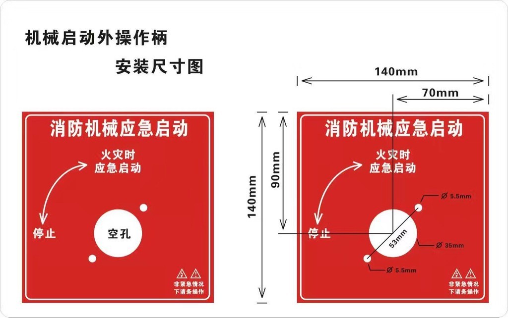 2、消防泵、噴淋泵控制柜為星三角啟動方式時由二組“機械應急啟動裝置”分別啟動1#、2#泵,火警時可啟動1#、2#泵任何一臺;啟動時手柄按下90°,啟動后必須待火情實際情況,由有管理權限的人手動停泵(不可自動停泵或火警時手動停泵)。