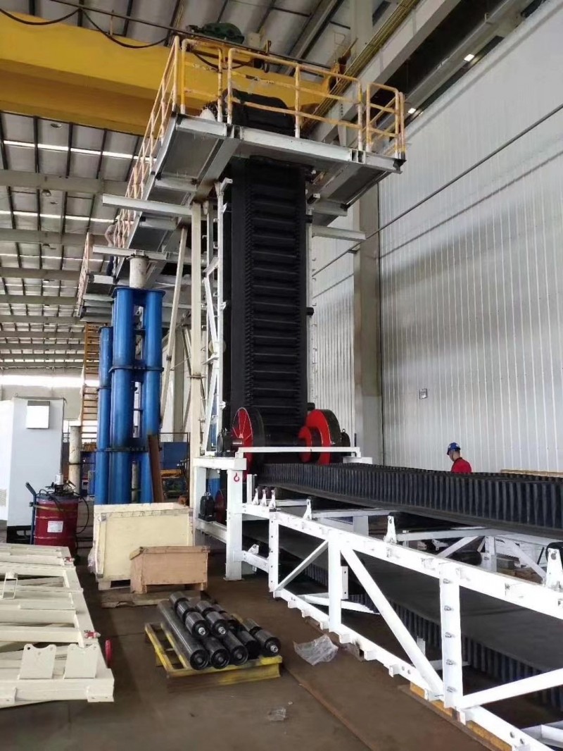 行可靠、維修方便等優點,更可大傾角輸送,結構緊湊、占地少,近年在提升高度,大輸送量的方面發展很快,使其應用更為廣泛。