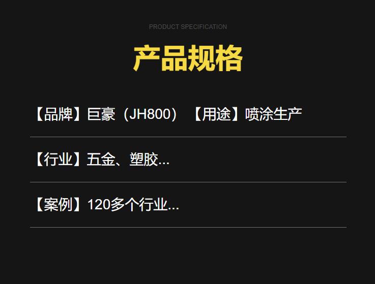 更新信息 快采購網供應商廣東省巨豪智能裝備有限公司供應整廠自動噴涂線,為您提供詳細的產品報價、參數、圖片等商品信息,本產品于2024-06-03 09:21更新,主要更新內容為:產品類別、產品參數、產品價格、產品圖片等信息。如需進一步了解整廠自動噴涂線詳細信息,請與廠家直接聯系,并說明是在快采購網看到這條商機的。