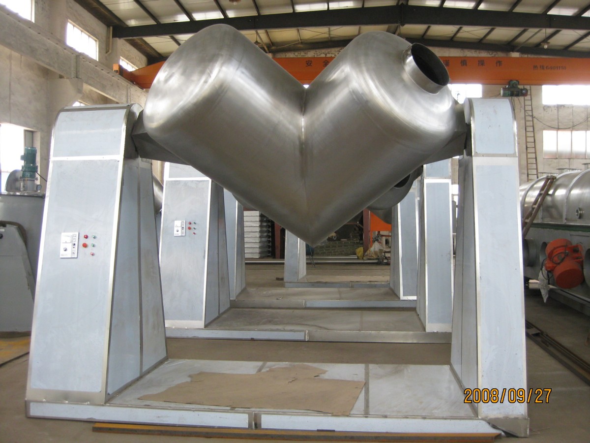 V型混料機為不對稱混料機,它適用于化工、食品、醫藥、飼料、陶瓷、冶金等行業的粉料或顆料狀物料的混合。該機混料筒結構合理,混合均勻,效率,不積料,操作密閉,進出料方便,外表面和物料接觸部分均采用不銹鋼制造,造型美觀,維護、清洗方便。