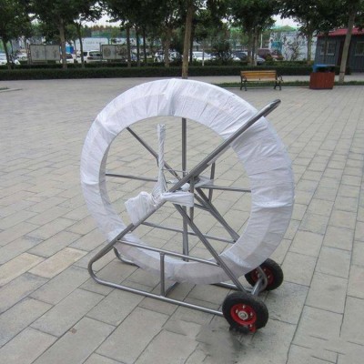 玻璃鋼穿孔器又名(玻璃鋼穿線器、玻璃鋼穿管器,穿孔器,穿管器,電纜穿管器,電纜穿孔器)對于在管道中牽引引導繩是優秀的輔助工具。光滑又富于彈性的表面可使穿孔器輕松地通過狹窄的通道。穿孔器由三部分構成:銅芯、玻璃纖維加強層、高壓低密度聚乙烯防護層(平滑、堅固,可抵抗惡劣環境)。銅芯導體使捅條可以用不同方式輕易安放。璃鋼穿孔器具有省時,省力,提高工效等優點,可用于電信管道清洗及光纜,電纜和塑料子管的布放。使用時首先將玻璃鋼覆桿由引輪引出,然后與相應的金屬頭聯接,穿入管路內。用于清理時,引導頭帶動清理工具,可以清理管道;用于布放電纜時,可先將鋼絲或鐵線帶入,爾后用鋼絲或鐵線牽引電纜入管。桿 11-18mm 100-500m 溫度范圍 -40+80小彎曲半徑 295mm 牽引斷裂張力 4.5T 線密度 150g/m 建筑施工引線用墻壁穿線器,長度30m40m60m80m120m150M200M300M500M 1000米等,可按客戶要求定制。