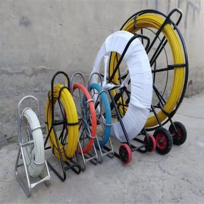 玻璃鋼穿孔器又名(玻璃鋼穿線器、玻璃鋼穿管器,穿孔器,穿管器,電纜穿管器,電纜穿孔器)對于在管道中牽引引導繩是優秀的輔助工具。光滑又富于彈性的表面可使穿孔器輕松地通過狹窄的通道。穿孔器由三部分構成:銅芯、玻璃纖維加強層、高壓低密度聚乙烯防護層(平滑、堅固,可抵抗惡劣環境)。銅芯導體使捅條可以用不同方式輕易安放。璃鋼穿孔器具有省時,省力,提高工效等優點,可用于電信管道清洗及光纜,電纜和塑料子管的布放。使用時首先將玻璃鋼覆桿由引輪引出,然后與相應的金屬頭聯接,穿入管路內。用于清理時,引導頭帶動清理工具,可以清理管道;用于布放電纜時,可先將鋼絲或鐵線帶入,爾后用鋼絲或鐵線牽引電纜入管。桿 11-18mm 100-500m 溫度范圍 -40+80小彎曲半徑 295mm 牽引斷裂張力 4.5T 線密度 150g/m 建筑施工引線用墻壁穿線器,長度30m40m60m80m120m150M200M300M500M 1000米等,可按客戶要求定制。