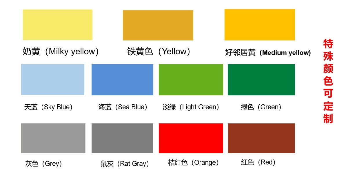 顏色 黃色、綠色、紅色、藍(lán)色、灰色