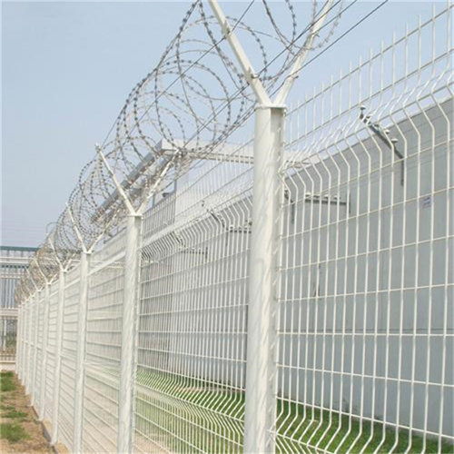 監獄刀片刺絲滾籠新建鐵路時速200公里以上,采用2.2米高度鋼筋混凝土防護柵欄+0.5米監獄刀片刺繩,設計時速200公里以下鐵路,一般地段采用1。8米高度鋼筋混凝土防護柵欄+0.5米監獄刀片刺繩,監獄刀片刺繩采用刀片刺網繞圈后相鄰兩圈每隔120°用鐵絲連接卡固定,張開后形成蛇腹網狀,閉合后刀片刺網圈徑為50cm,張開后每交叉圈安裝間距20cm,直徑不小于45cm,監獄刀片刺繩下緣距離鋼筋混凝土防護柵欄上緣的垂直距離為0.05米。