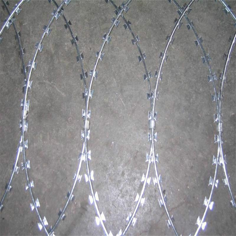 防盜網(razor barbed wire)也稱為刀片刺絲、防盜網,是一種焊接刀片刺繩。防盜網具有美觀、經濟實用、防阻效果好、施工便利等特點,目前,防盜網已被應用于許多國家的工礦企業、園林公寓、邊防哨所、軍事領域、建筑物和其他國家的安全設施。