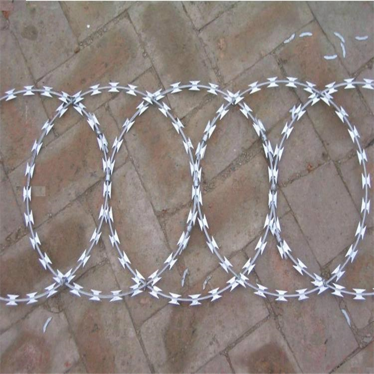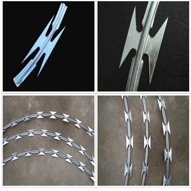 工 藝:它采用鋼板(刀板)沖壓成型包附于熱鍍鋼絲(芯線)之上,由銳利尖角鍍鋼板或