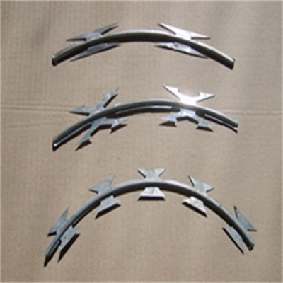 刀片刺繩成螺旋狀,是在兩條刀片刺繩之間以不銹鋼片和鍍鋼片夾扣,展開后即呈交叉狀,美觀又實用,卷經(jīng)大小可供選擇,圈數(shù)也可供選擇,大小均可定做,具有防腐、、抗曬等特點,防腐蝕,比一般鐵絲使用壽命長
