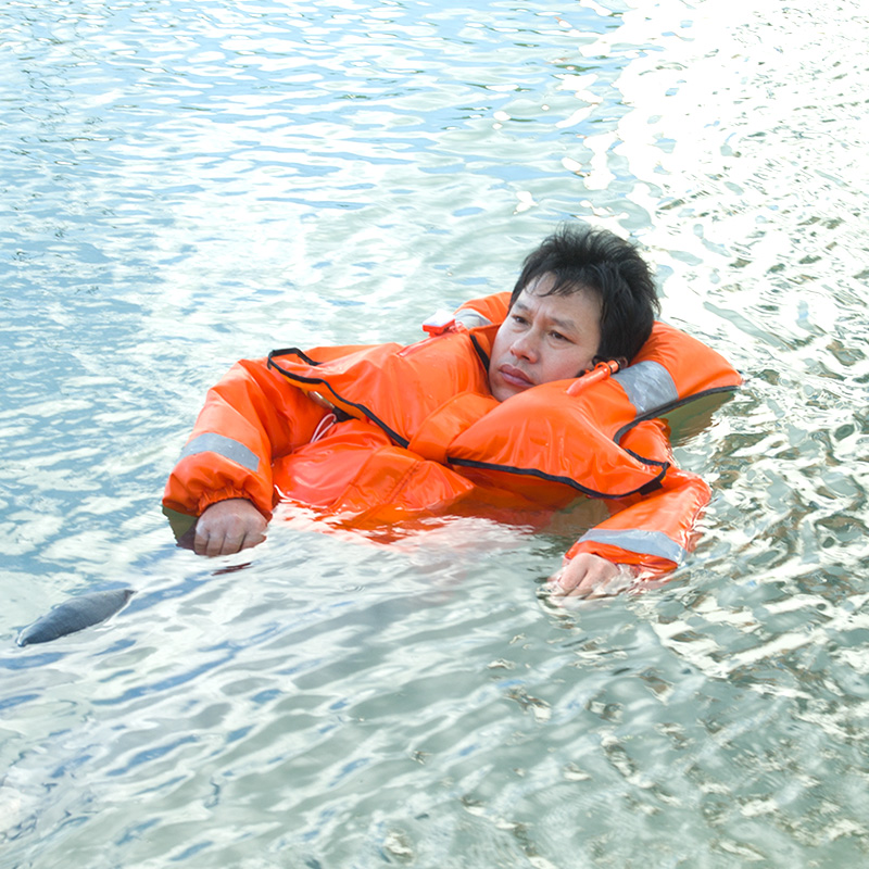 遇到應急事故搶險救災,萬一發生茲水事故,該防護服即在5秒內自動充氣,將茲水者托出水面,確保茲水者生命安全。是最理想、最可貴、最方便安全的防護用品。
