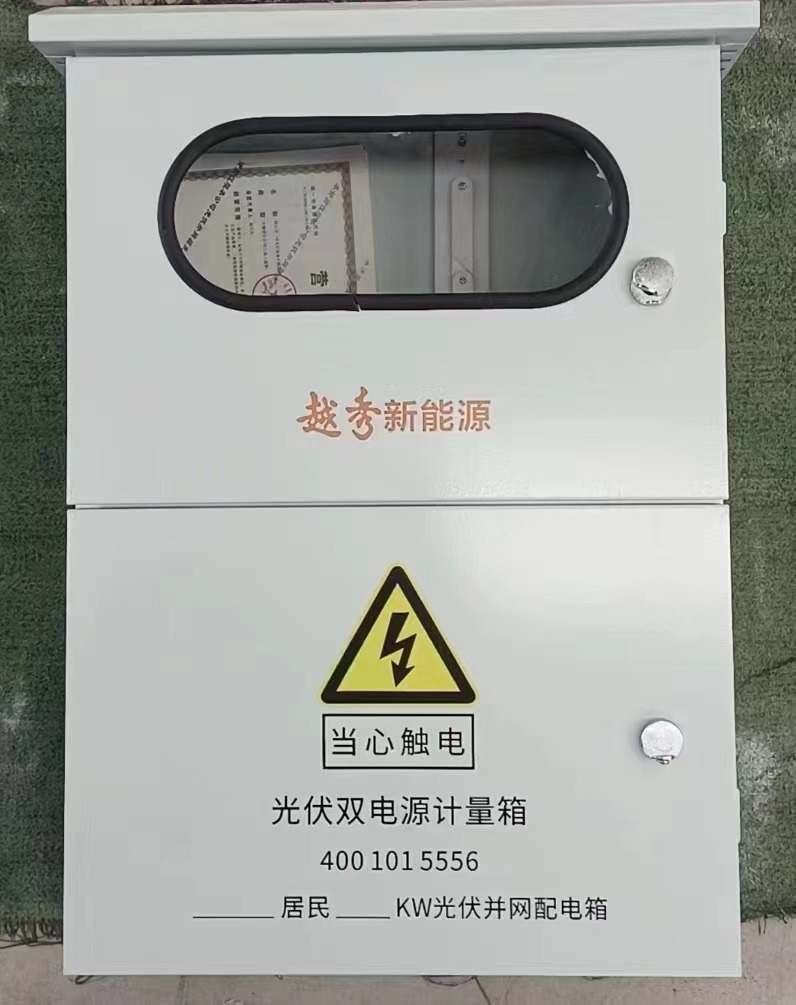 7、電能計(jì)量 一般光伏電能計(jì)量表,都與配電箱裝在一起。也有一些地方會(huì)把電表與配電箱分開來。配電箱與計(jì)量表放在一起比較好。一是離得近,線損比較少。二是節(jié)省一個(gè)箱子。三是查詢和維修方便。我國戶用光伏電站,電表都是由供電局免費(fèi)提供和安裝的,為了防止個(gè)別用戶私自更改電表設(shè)置,配電箱安裝電表的門要有安全裝置,只能允許供電局打開。