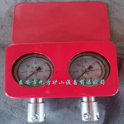 泰安市九方礦山設備有限公司生產的綜采測壓雙表具有實時監測綜采液壓支架的支撐工作阻力,以便掌握該工作面的工作壓力和支架支護質量,有效的檢測支架壓力和頂板來壓防護。由高強度、耐腐蝕、抗靜電外殼和 抗震壓力表組成,具有防銹、外觀美觀、精度高、抗震、可長 期在井下使用,無需進行維護等特點。