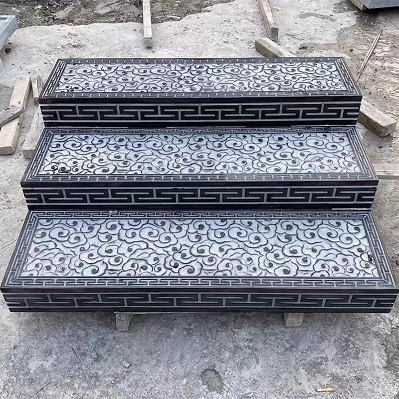 四合院祥云臺階石石雕臺階過門石石雕門檻石-古建筑中的臺階,是連接地面與殿堂的橋梁,也是宮殿廟宇的重要組成部分。它們通常由石材雕琢而成,有的臺階寬闊平坦,有的則陡峭險峻。臺階上雕刻著各種圖案,寓意著吉祥如意和皇家的威嚴。踏上這些臺階,仿佛能聽到歷史的回聲,感受到古人的虔誠與崇敬。