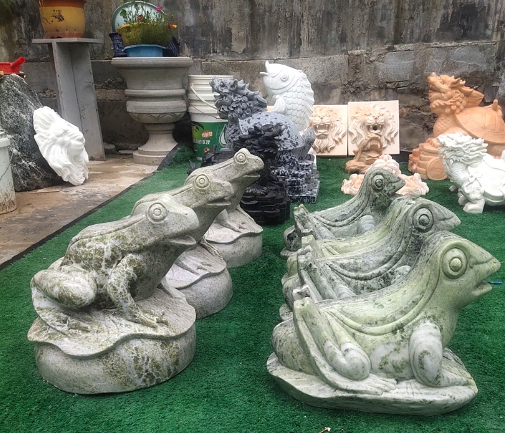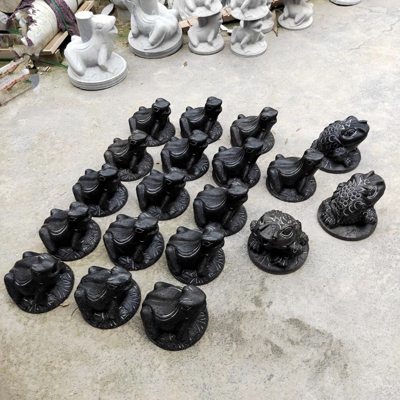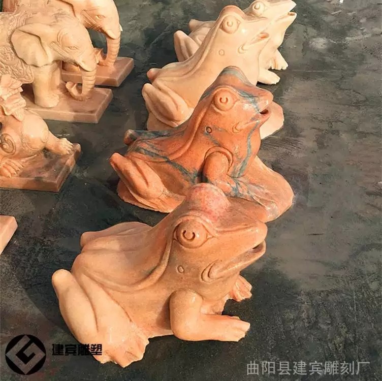 石雕青蛙有招財的寓意,俗稱金蟾,一般大多金蟾是銅雕做的,而用石雕材質做的蟾蜍,則稱為石雕青蛙。當然,石雕青蛙的種類是很多的,一般有蹲在金元寶智商的三足青蛙,背負錢串的, 也有單只豐體肥碩,滿身豐滿的青蛙,石雕青蛙一般有吐寶發財,財源廣進的寓意。一般,石雕青蛙比較適合經商的人們擺放。