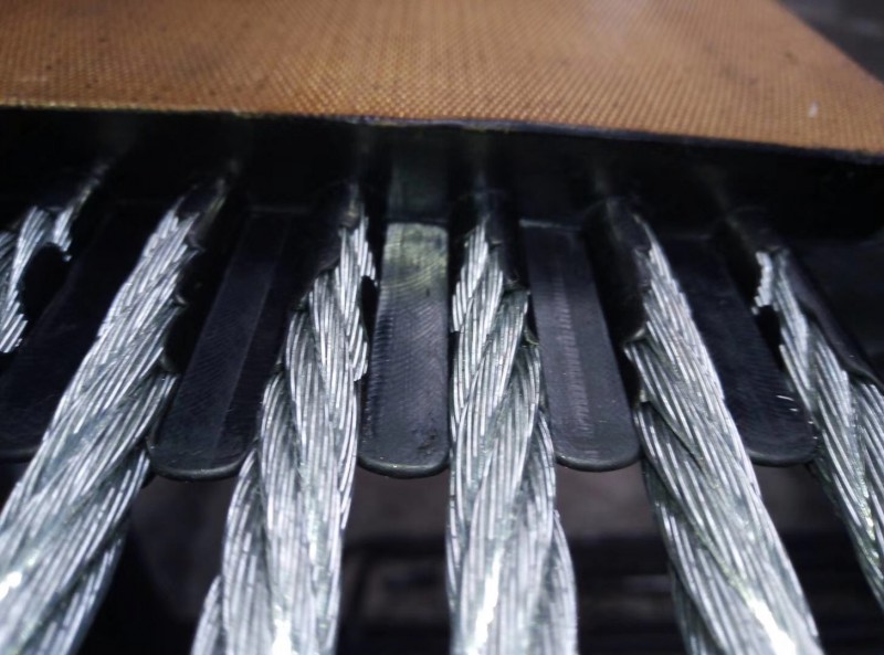 3:采用鍍鋅全開放式結構鋼絲繩與橡膠具有良好的附著性和滲透性,透氣性實驗指標達到國際先進水平,鋼絲不脫落,耐沖擊使用壽命長。