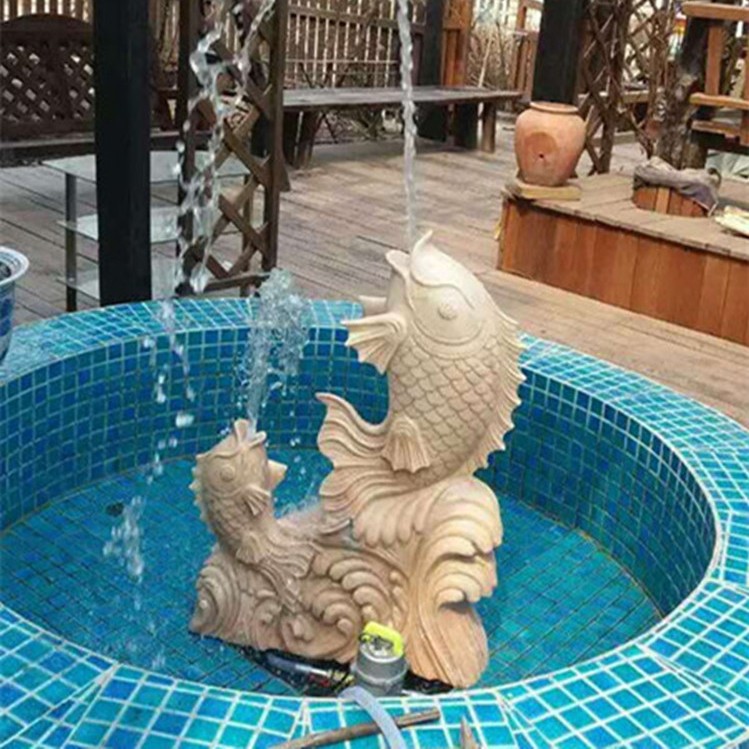 噴水石雕魚吐水鯉魚石雕戶外水池廣場(chǎng)噴泉小魚石雕流水?dāng)[件